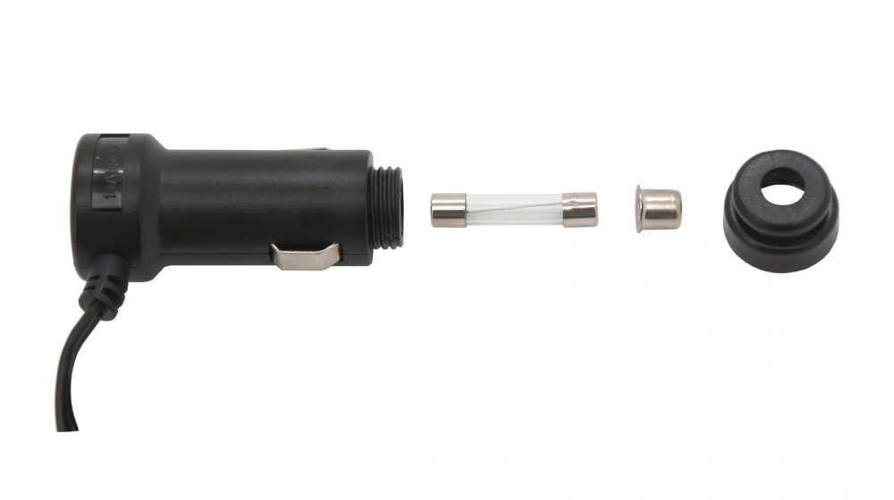 12V konektor pro připojení do zásuvky zapalovače je opatřen skleněnou 10A pojistkou.