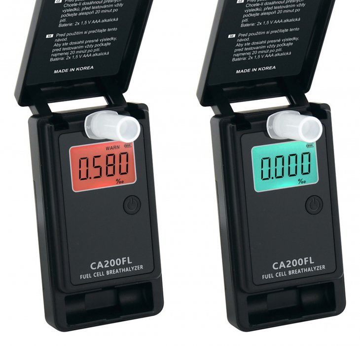 Je osazen přehledným displejem s podsvícením. Pracuje s rozsahem měření 0 - 4‰ alkoholu v krvi, s napájením 2x baterií 1,5V AAA.