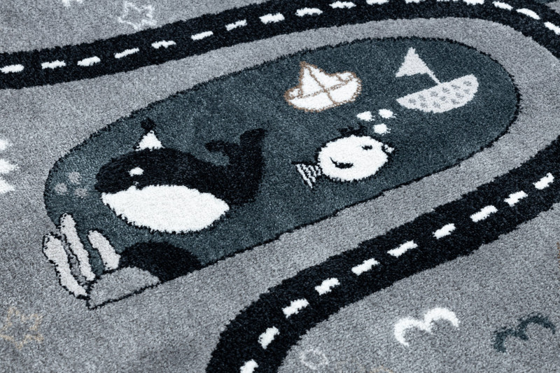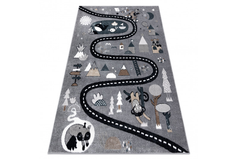 Popis Dětský kusový koberec Fun Route Street animals grey - 80x150 cm