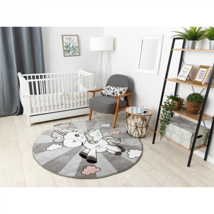 Dětský kusový koberec Petit Unicorn grey kruh - 160x160 (průměr) kruh cm