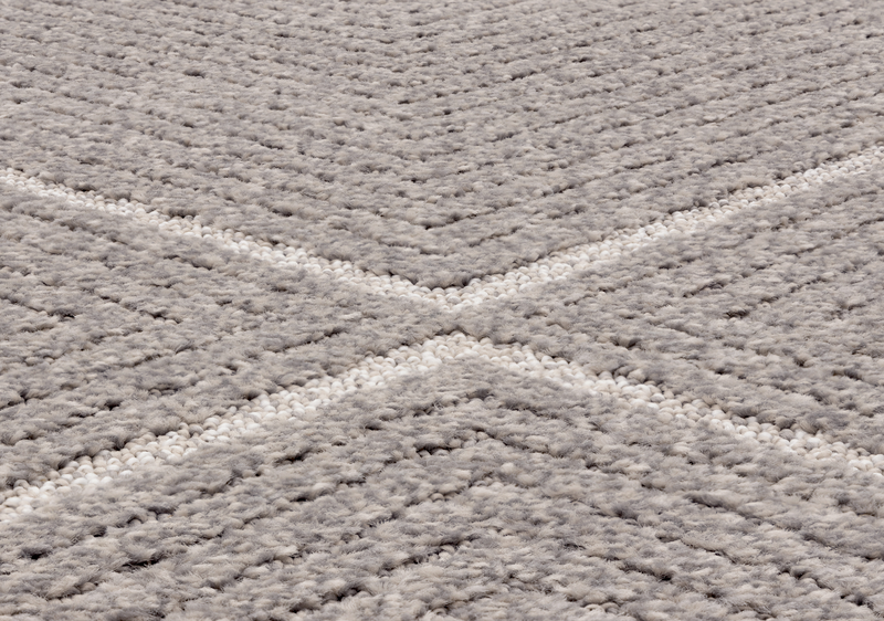 3D efekt,jednobarevné provedení v šedé barvě s jemným tónováním. Smyčkový vlas se střídá s vlasem střiženým a spolu vytváří více či méně výrazné obrazce na kobercové ploše.
