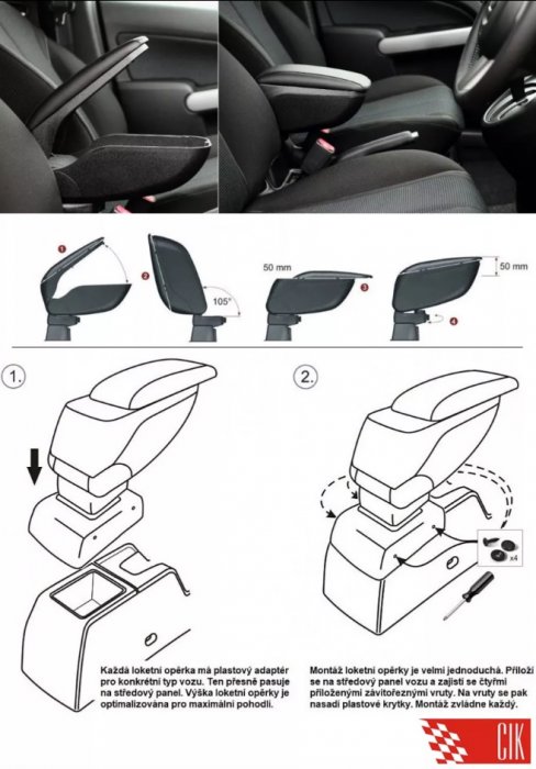 Inštalácia lakťovej opierky je veľmi jednoduchá. Pripevňuje sa pomocou dvoch