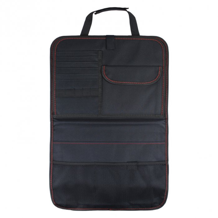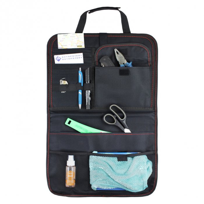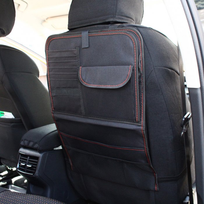 Organizér na přední sedadla vozu je praktický doplněk pro zpohodlnění cestování Vás i Vašich dětí. Je vybaven spoustou kapes a přihrádek pro uložení jídla a pití, psacích potřeb, atd. Organizér je také vybaven výklopným stolkem pro opření tabletu, atd. Zároveň ochrání potah přední sedačky před zněčištěním a poškozením díky PU podšívce.