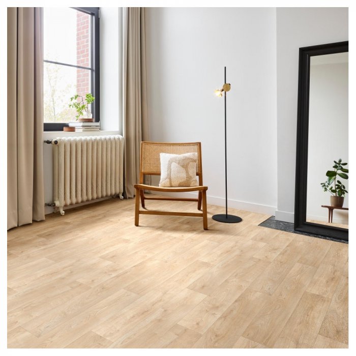 Záťažová vinylová podlaha Rochester ponúka vysokú úroveň odolnosti spolu s atraktívnymi vzormi dreva a kameňa. Má nášľapnú vrstvu 0,7mm, ktorá robí tento vinyl veľmi odolným voči opotrebovaniu, poškriabaniu a tiež silnú UV odolnosť aby nestratila svoj odtieň. Vďaka záťažovej triede 43 býva použitá aj v komerčných alebo priemyselných oblastiach. Vzor Calais 630 má svetlú béžovú farbu, ktorá bude mať silný osvetľujúci účinok v tmavších interiéroch. Drevené lamely na jeho vzore majú šírku 20cm.