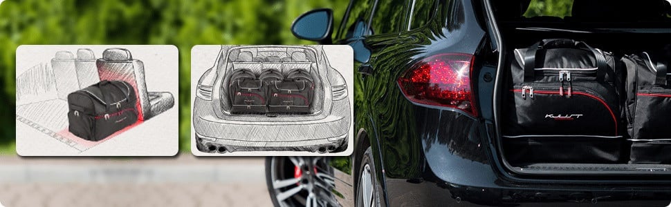 Cestovní tašky, které jsou určené do zadní části kufru, mají asymetrický tvar a kopírují sklon zadních sedaček. Prostor kufru Vašeho auta je využitý až o 30% efektivněji než při použití cestovních tašek a brašen různých velikostí.