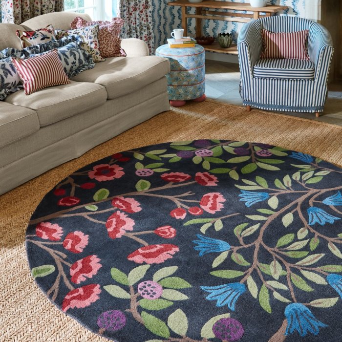 Vlněný kruhový koberec Sanderson Foraging indigo 146618 - kruh 200 - Brink & Campman -